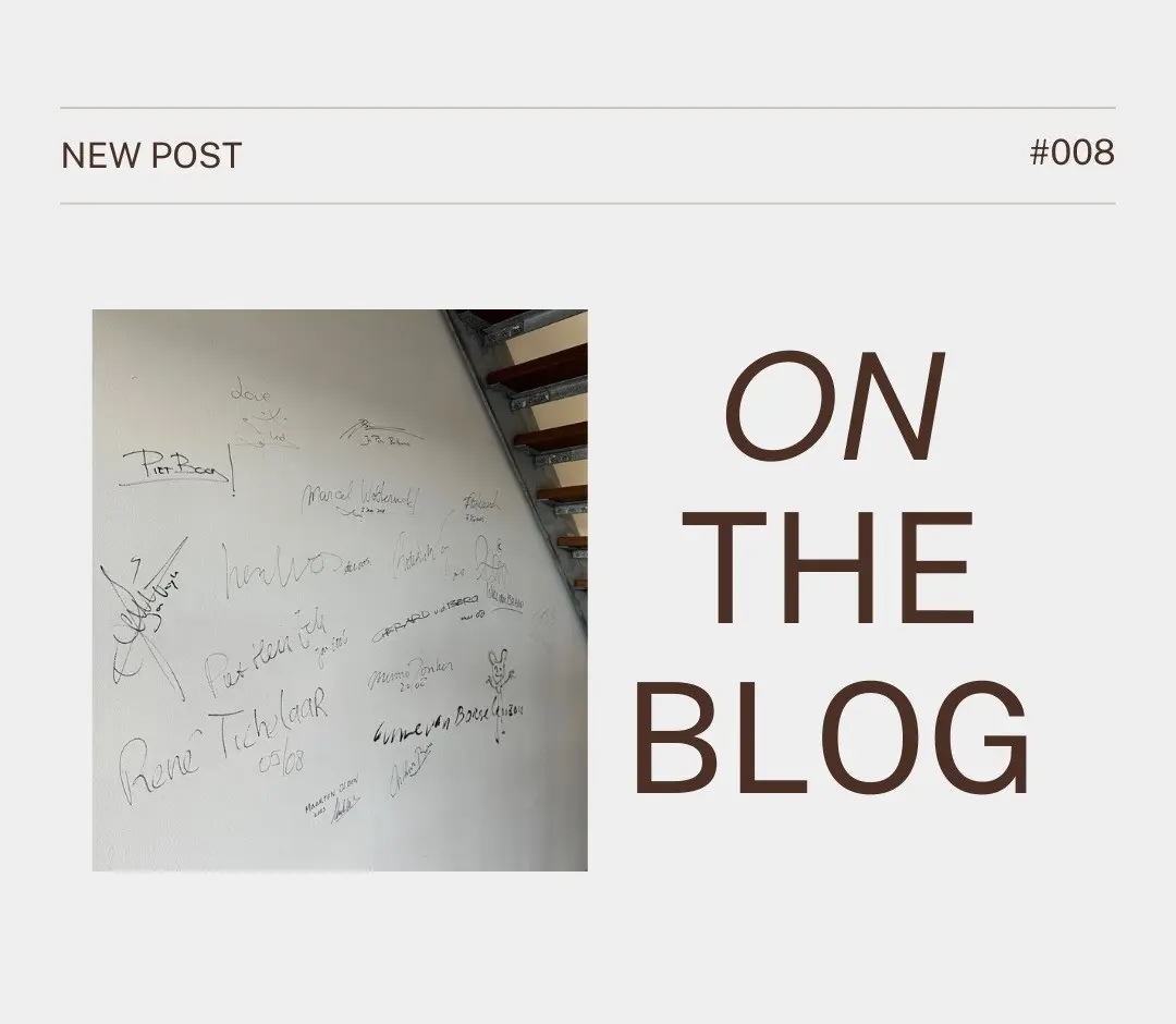 De muur was bekleed met diverse handtekeningen van bekende ontwerpers, o.a. Piet Boon, Marcel Wolterinck en Erik Kant! Als grapje vroeg ik of ik mijn handtekening ook moest zetten:) En wie bent u...?